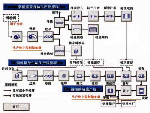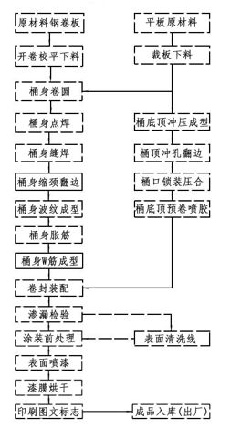 典型钢桶生产线流程 钢桶生产线工艺流程简图